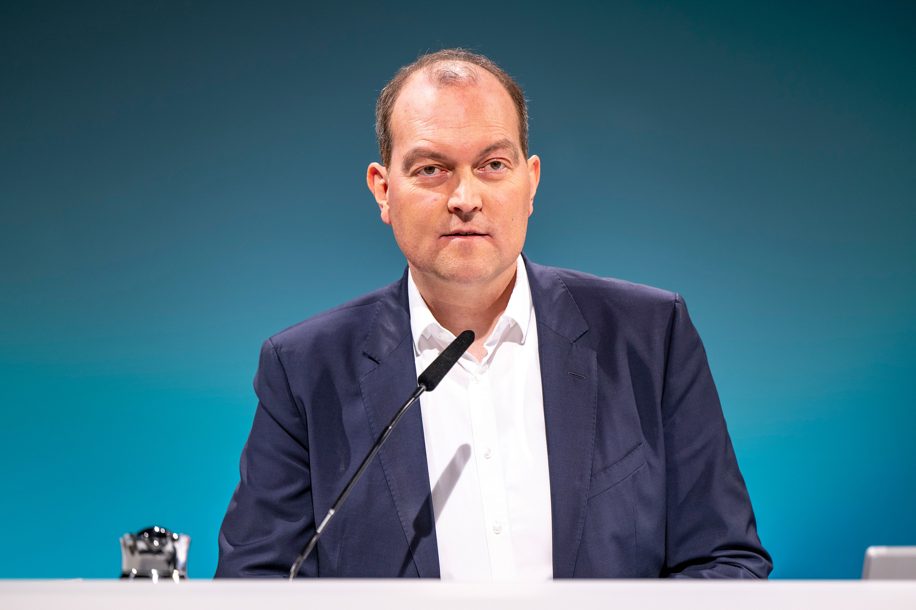 TRATON CEO Christian Levin on stage at the Annual General Meeting 2025.